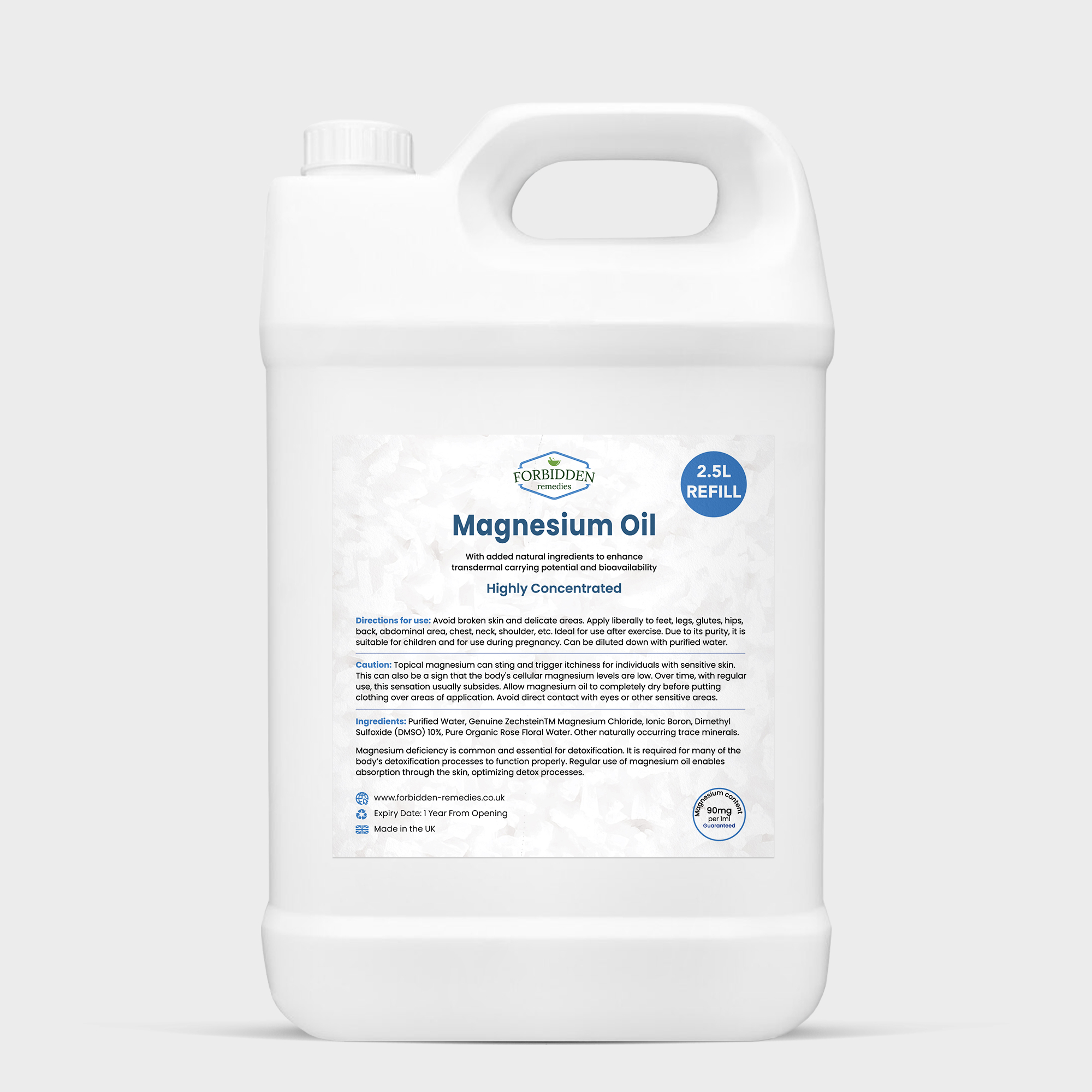 Magnesium Oil – Highly Concentrated. With added natural ingredients to enhance transdermal carrying potential and bioavailability.